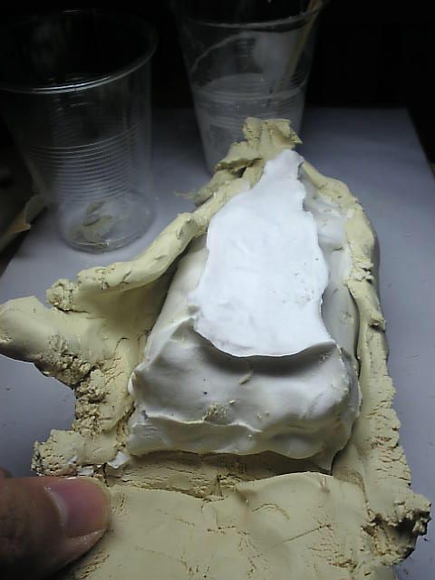次は石膏が固まった(15分位)ので粘土をはがします。